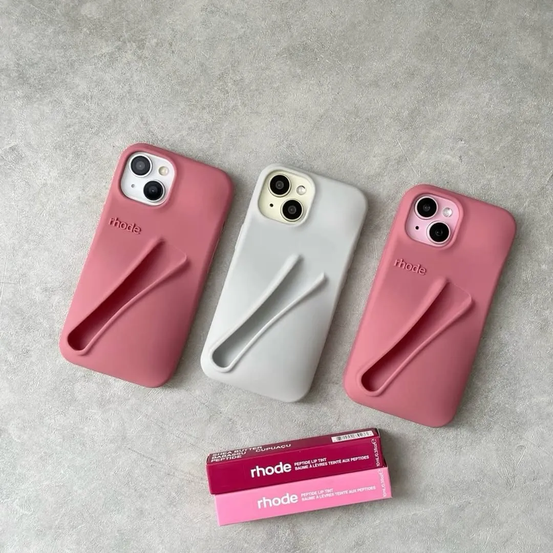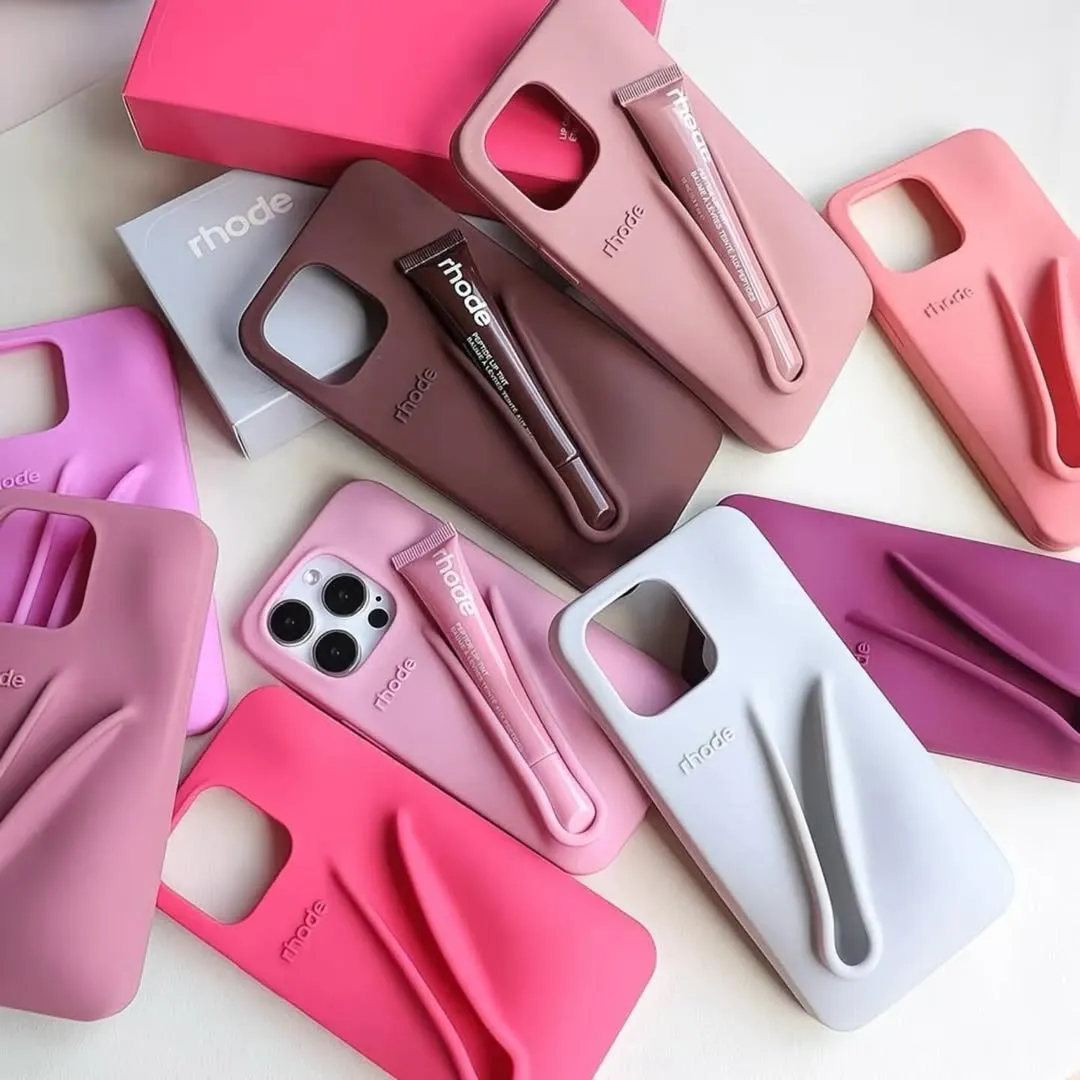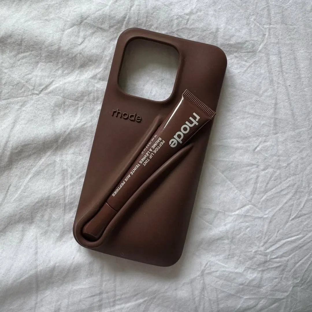 Original Rhode lip-gloss phone case — a silicone case designed with a built-in holder for a lip product. Available for all iPhone models